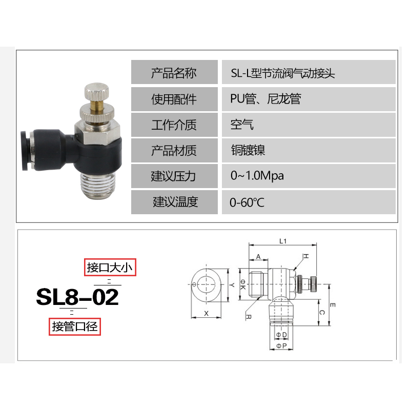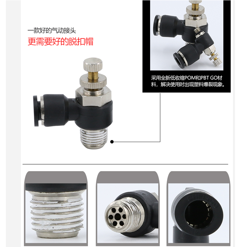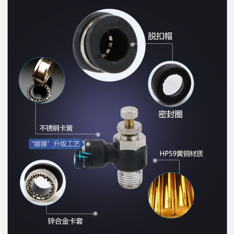 Pneumatic fast joint black throttle valve adjustable control valve switching valve pipe cylinder limit valve