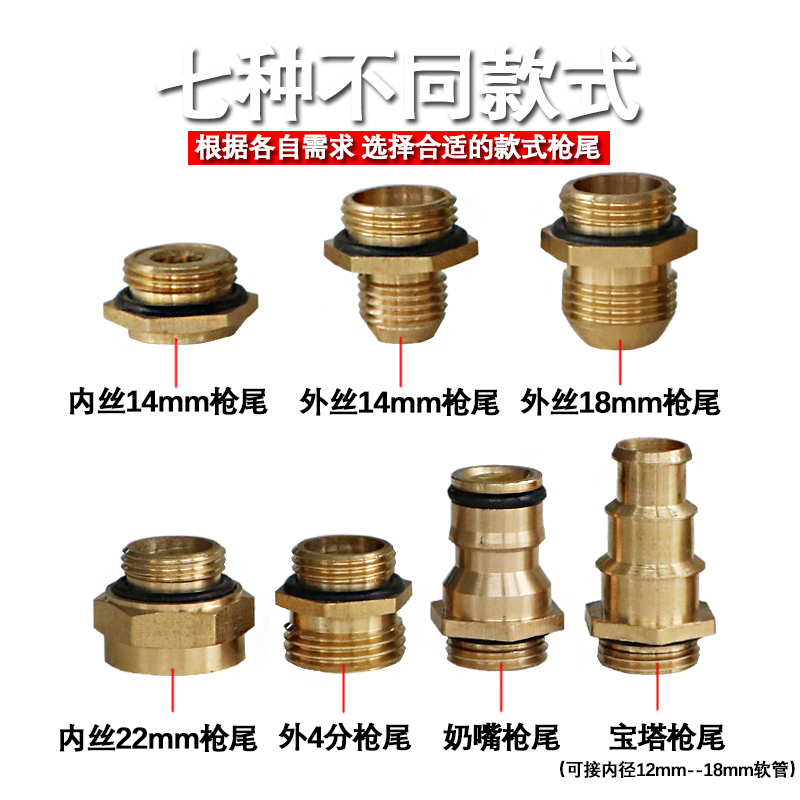 High Pressure Washing Machine Nipple Connection Quick Succession Black Water Gun Pure Copper Accessories Tail Conversion Joint Pure Copper Pagoda Tail