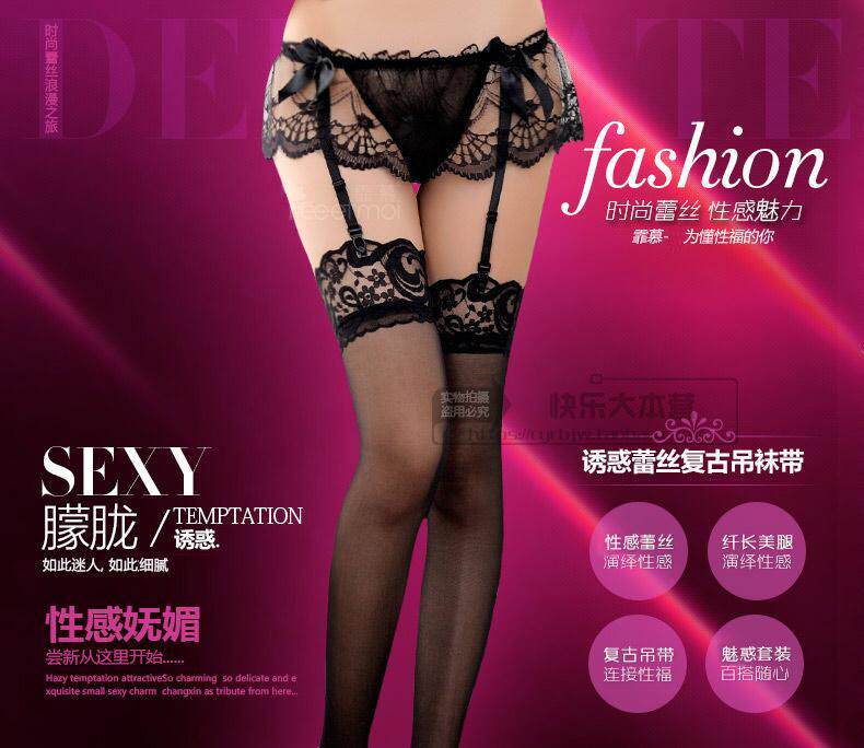 Sexy lingerie garter suit long tube stockings conjoined plus size fat mm belt underwear temptation lace transparent