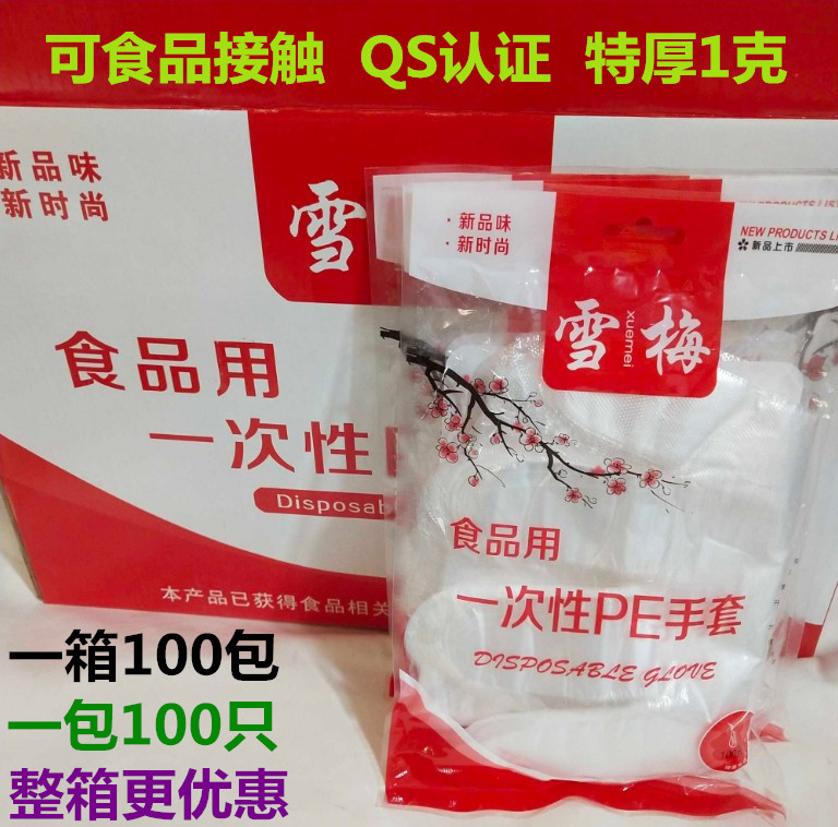 Promotion Wannuo day disposable PE plastic film gloves food grade thickened catering lobster pizza hairdressing gloves