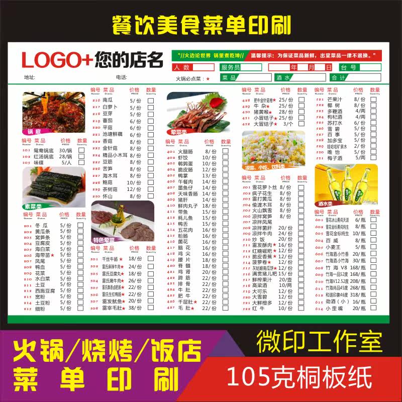 Hotel A la carte Dining DM menu Hot Pot menu Menu Production menu Printing Dining room Barbecue bar menu