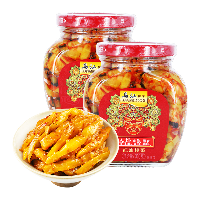 Wujiang red oil mustard bottled pickles pickles refreshing pickles Chongqing specialty next meal with porridge 300g*2 bottles