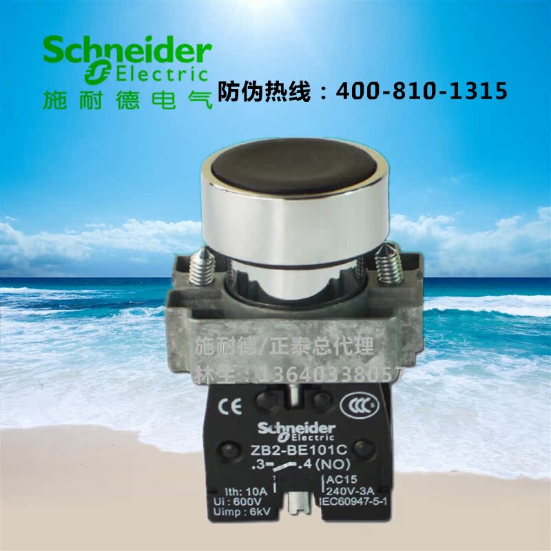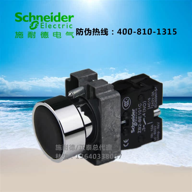 Original Schneider black flat head normally open button switch XB2-BA21C self-reset opening 22mm