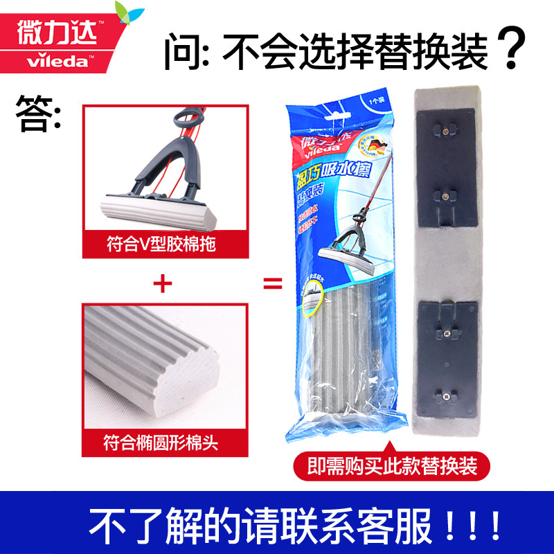 German Weilida sponge mop household half-folding Yingqiao water-absorbing glue cotton squeeze water hand-washing lazy mop head