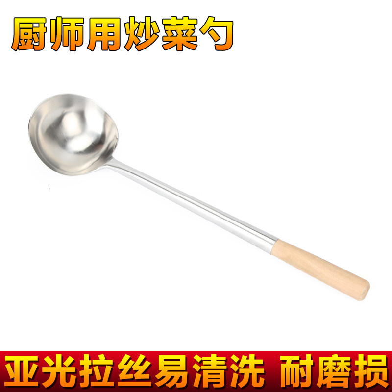 Chef's special thickened stir-fry spoon Long handle stir-fry spoon Stainless steel stir-fry spoon Large soup spoon Hotel stir-fry spoon Wooden handle hand spoon