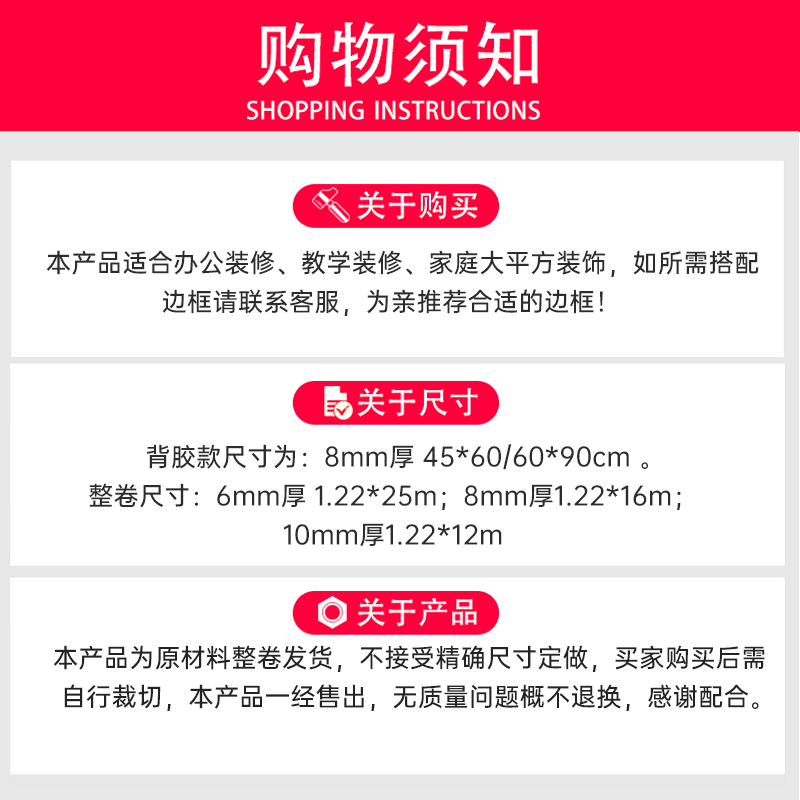8mm adhesive backing model 45×60cm 8mm adhesive backing model 60×90cm 6mm coil full roll 1.22 ×25m 8mm coil full roll 1.22 ×16m 10mm coil full roll 1.22 ×12m 8mm full roll (high density double layer crush) no adhesive backing model 1.22 ×16m 8mm full roll (high density double layer crush) adhesive backing model 1.22 ×16m
