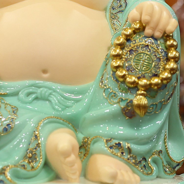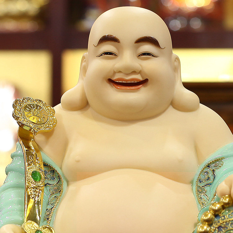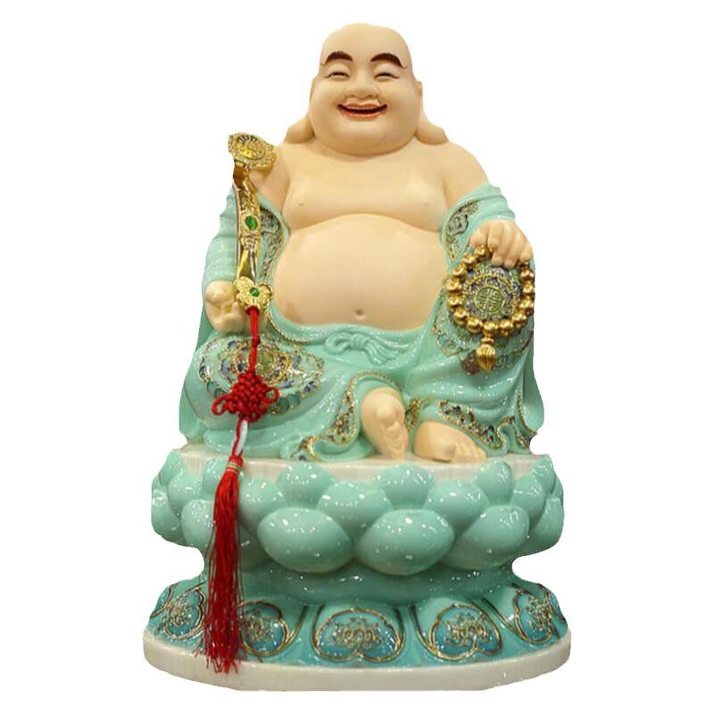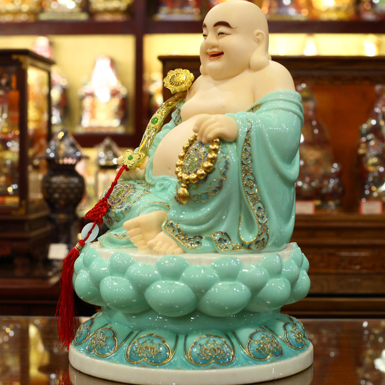 Sky blue glaze Hanbaiyu jade carving Maitreya Buddha ornaments big belly laughing Buddha cloth bag monk Bodhisattva Buddha statue for home worship