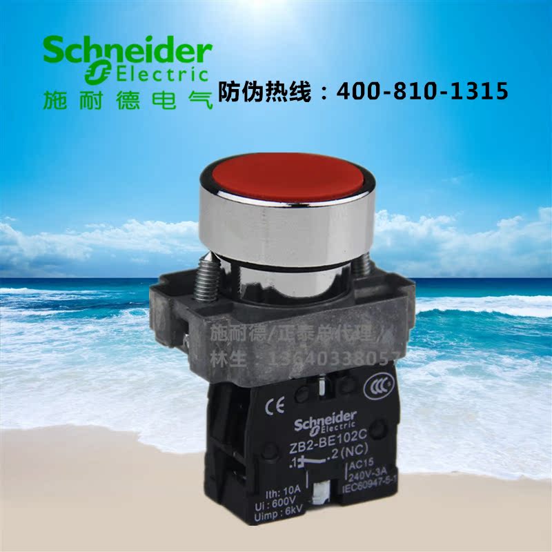 Original Schneider Red Flat Head Button XB2-BA42C Stop Button XB2BA42C Drilling 22mm