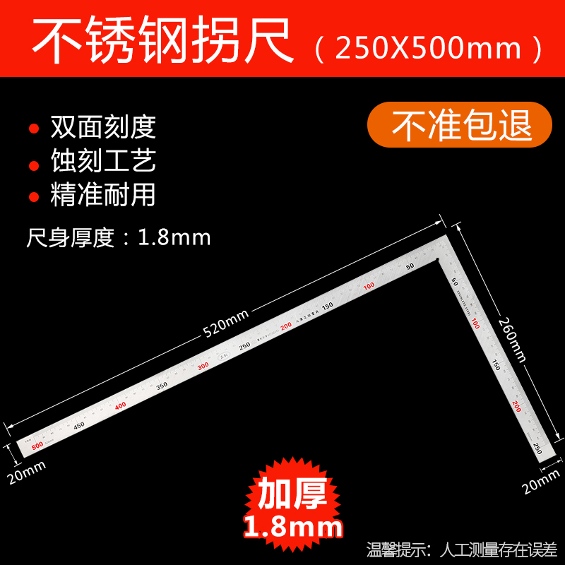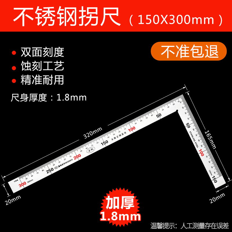 Thickened stainless steel angle ruler carpentry right angle ruler angle ruler angle ruler L-shaped ruler 90 degree curved ruler large extended plate ruler