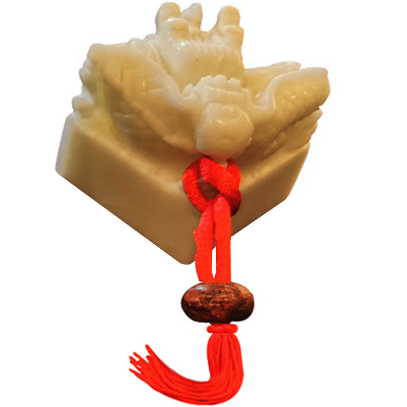 Natural Blue Field Jade Dragon Head Jade Seal Ornament Carving Seal Calligraphy and Painting Students Gathering Custom Logo Private Seal Customer