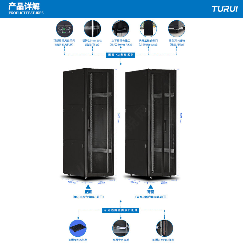 Totem K36042 Ding-level 42U server weak grid hole door cabinet 2 meters 600x1000x2000