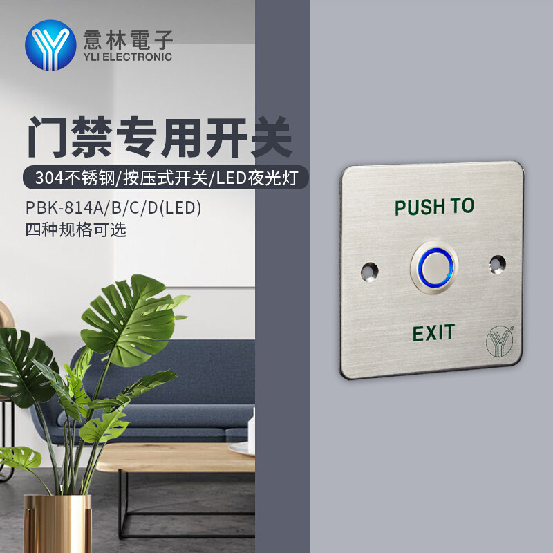 YLI willin electronic PBK-814 access control system special 304 stainless steel luminous access door exit switch button
