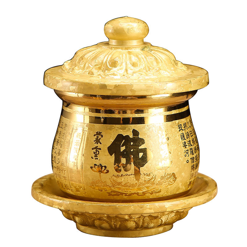 Yuantong Buddha water supply cup for Buddha Cup Pure Copper crystal Buddha word Heart Sutra Holy Water Cup Household Worship Buddhist supplies