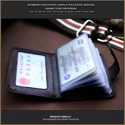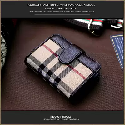 PUSUZE female check card bag women's multi card position European and American version cute cowhide with leather card bag male card holder business card bag
