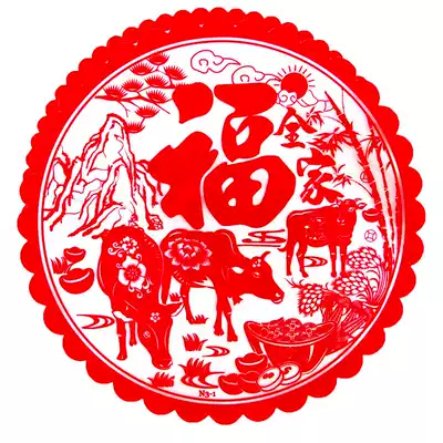 2021 New Year Decorative Products of the Year of the Ox Word Paper-cut Window Flower Creative Electrostatic Glass Sticker Spring Festival Housewarming Celebration