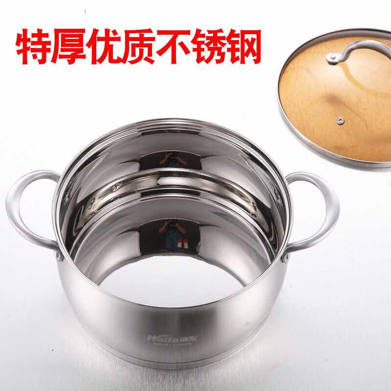 Haifa soup pot extra thick double bottom non-magnetic drum type milk pot stainless steel soup pot thickened soup pot with porridge milk pot