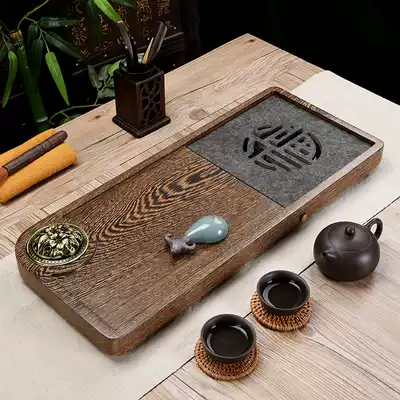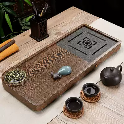Whole piece of chicken wing wood tea tray Incense road Modern simple ebony solid wood tea tray Tea sea tea table dry bubble table Ruyao porcelain