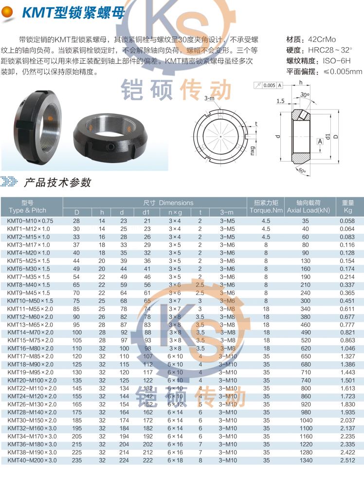 KMT type locking nut KMT0-M10*0 75KMT1-M12*1 0KMT2-M15*1 0KMT3-M17*1 0KMT