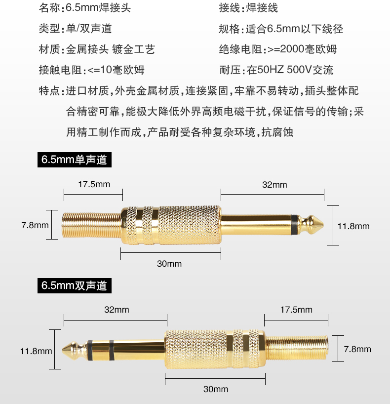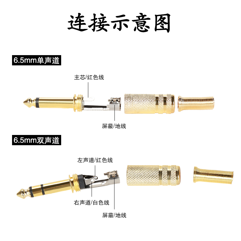 6 5mm welding head plug gilded mono-channel plug dual track tone bench Big two-core plug-Taobao