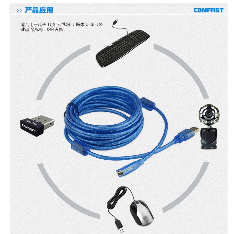 5 m USB 2 0 transparent blue extension cord with magnetic ring 5m with shielded motion blue keyboard print line translucent wire