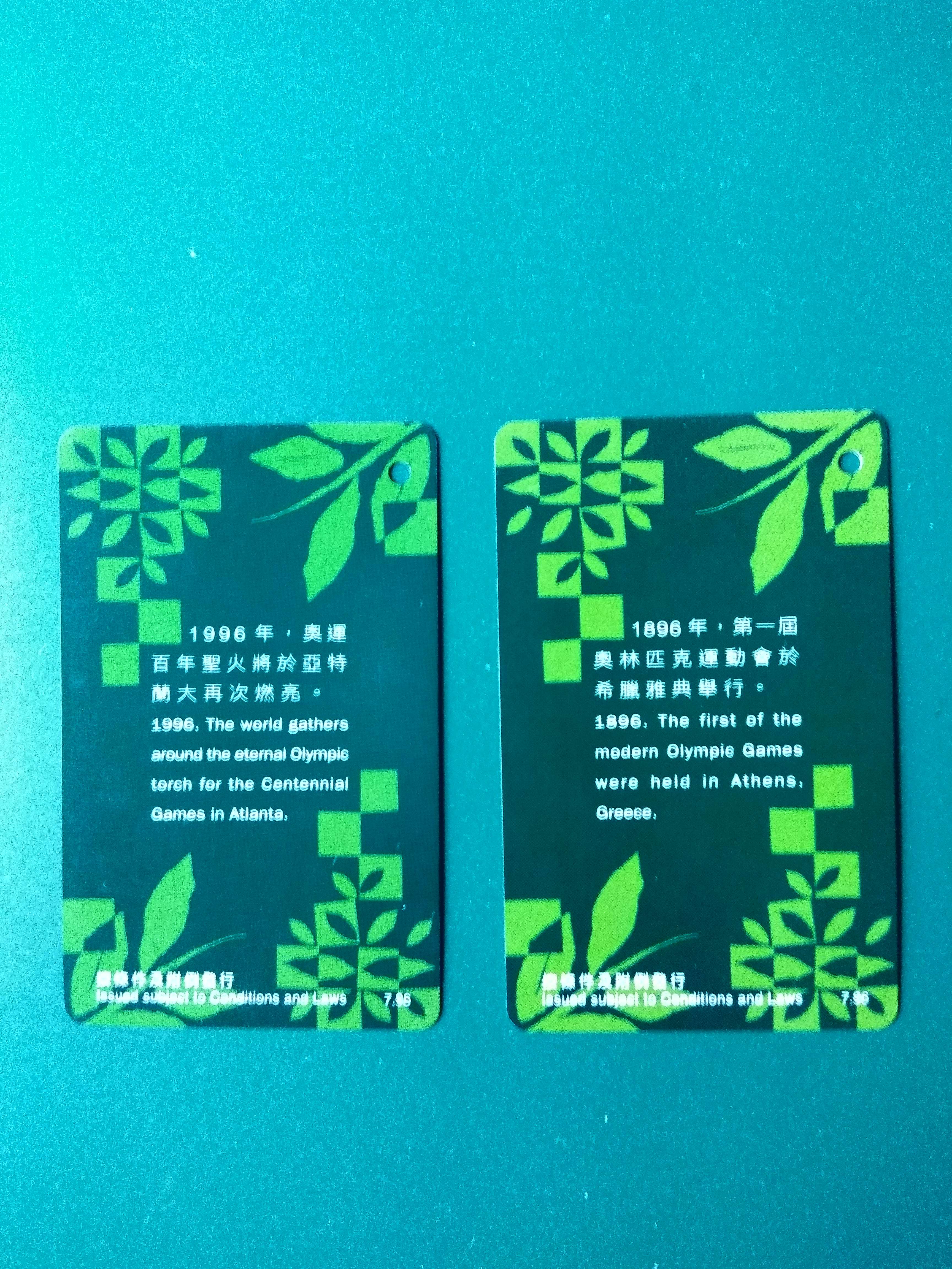 Hong Kong 1996 Olympic Games commemorative subway ticket pair