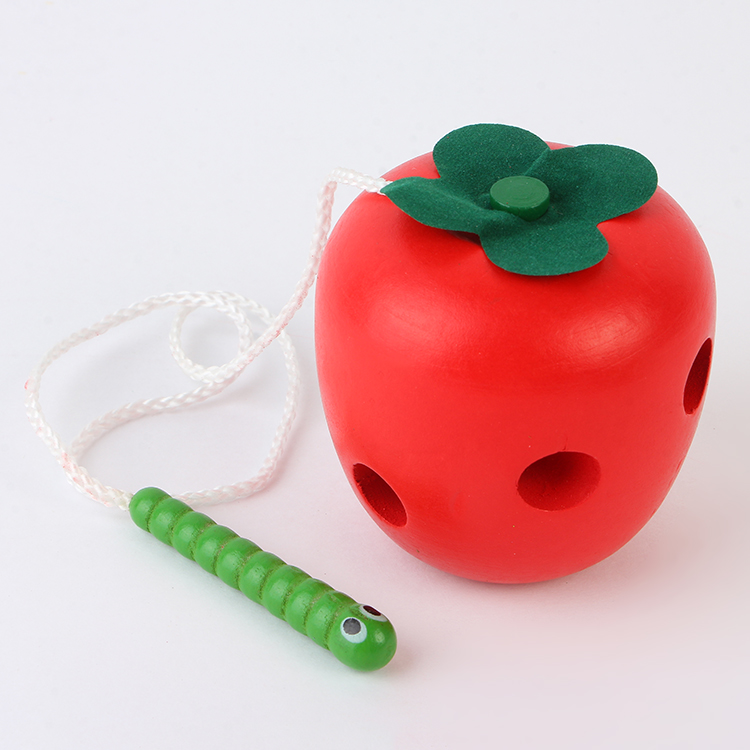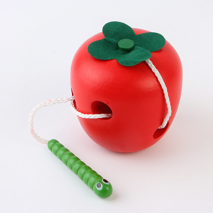 Insect Eating Apple Baby Wooden Thread and Rope Beaded Toy Montservers' Enlightenment Hand-Eye Coordination Teaching Ait 0-3 Years Old