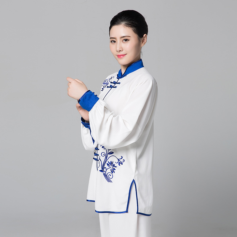 Spring and autumn Taiji clothing male embroidery Jiajia cotton performance clothing female blue and white porcelain Taijiquan Chinese old morning exercise clothing pants