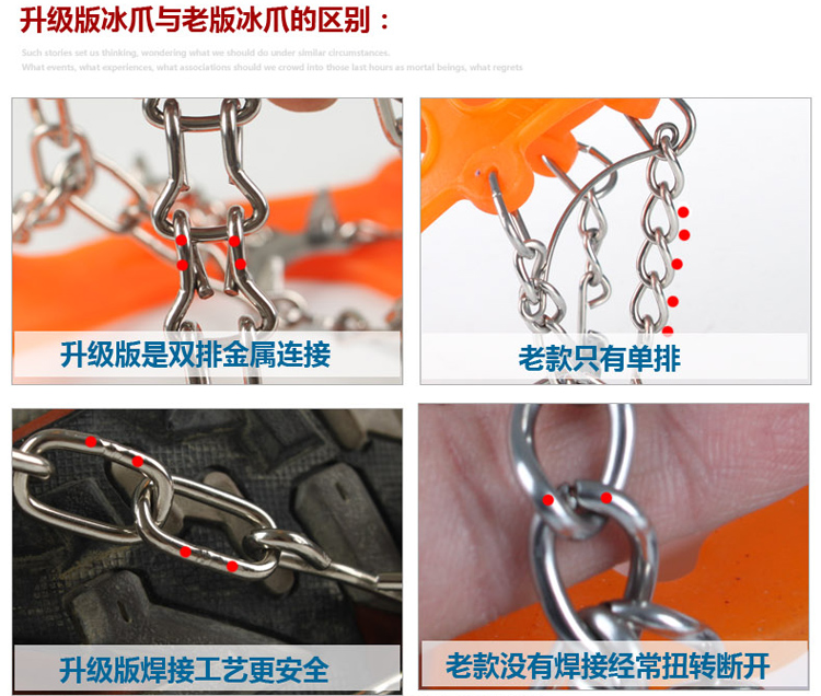 Outdoor non-slip shoe covers crampons snow mountaineering spikes double row chain rock climbing equipment snow claws 11 teeth stainless steel ice grip