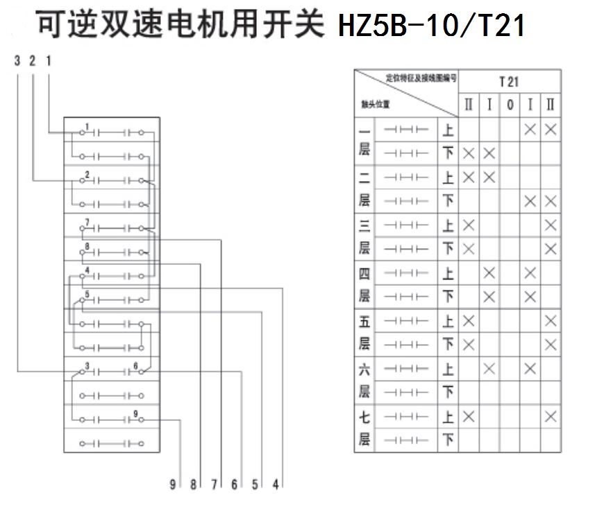 HZ5B-10 T21 motor high and low speed positive and reverse control switch