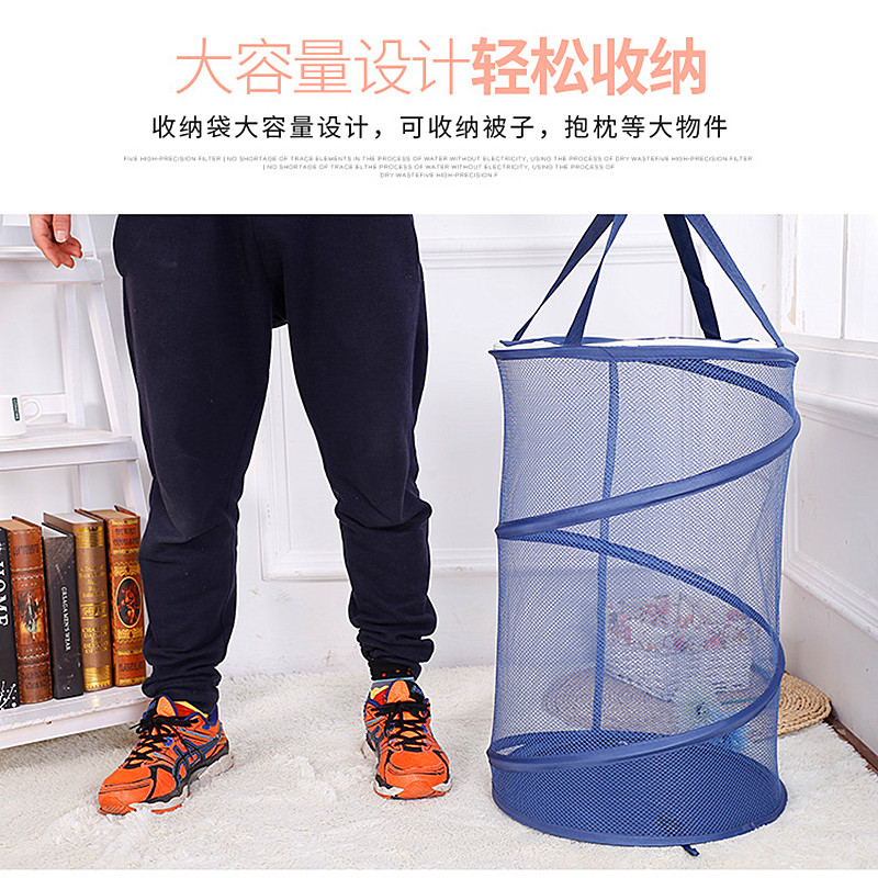 Oversized net bucket with lid zipper foldable dirty clothes storage basket household storage basket dirty clothes bucket toy storage