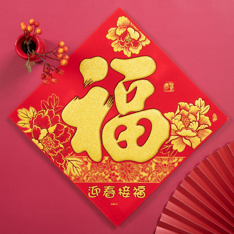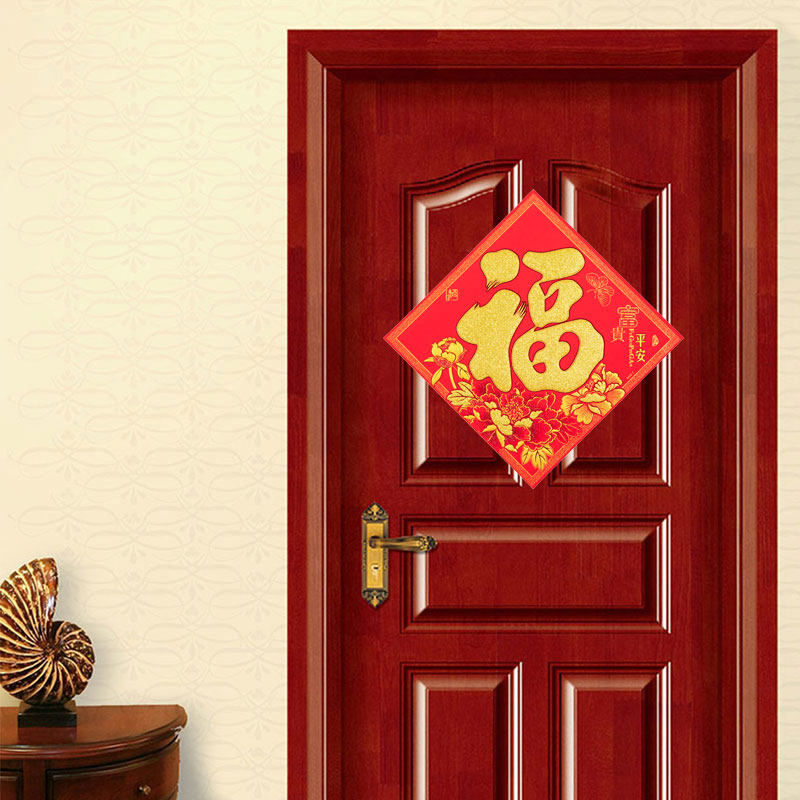 Flocking cloth blessing stickers Spring Festival New Year 2022 Year of the Tiger festive supplies door stickers glass stickers bucket square joint decoration