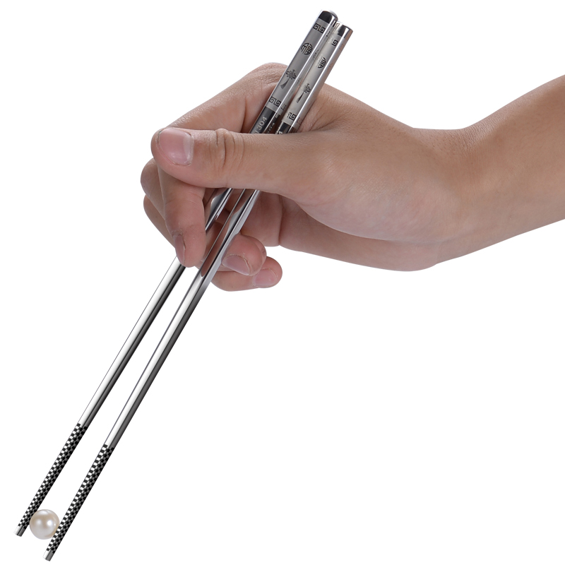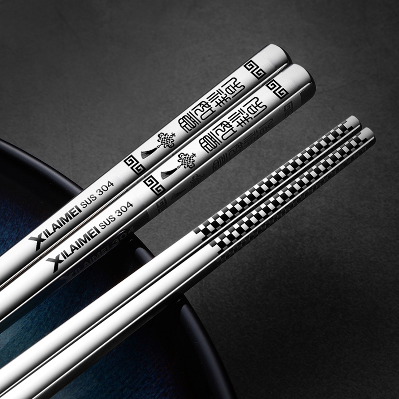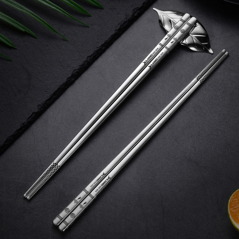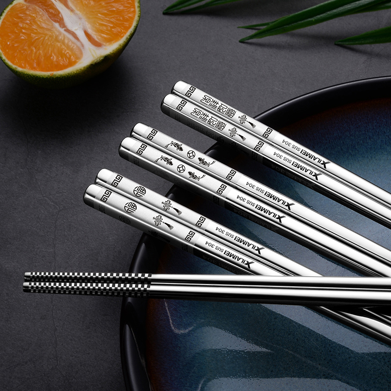 Germany 304 stainless steel chopsticks square chopsticks Household non-slip metal chopsticks Alloy chopsticks Children chopsticks family set