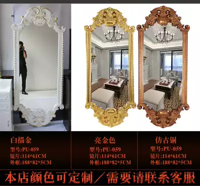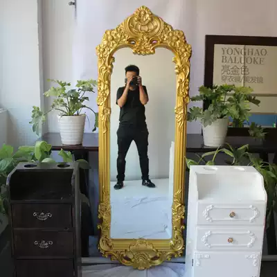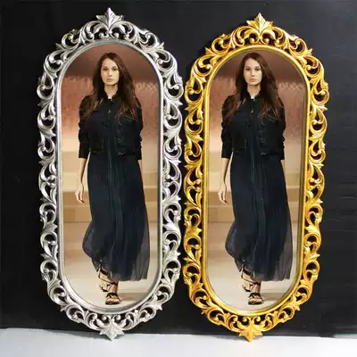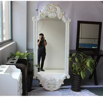 Lichen shop mirror table European carved retro full-length mirror beauty salon mirror wall-mounted fashion hair cutting mirror table