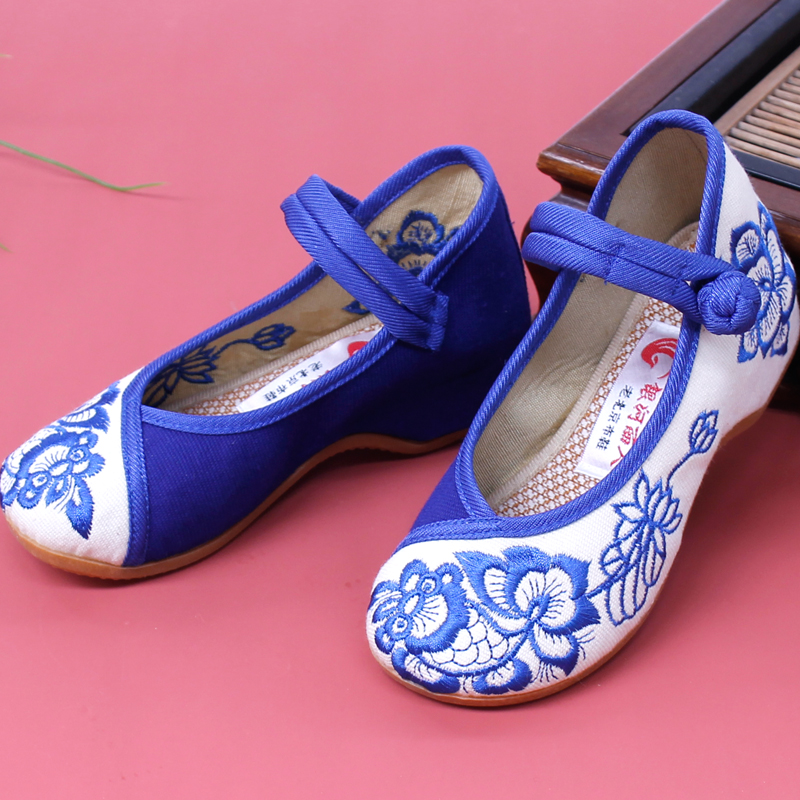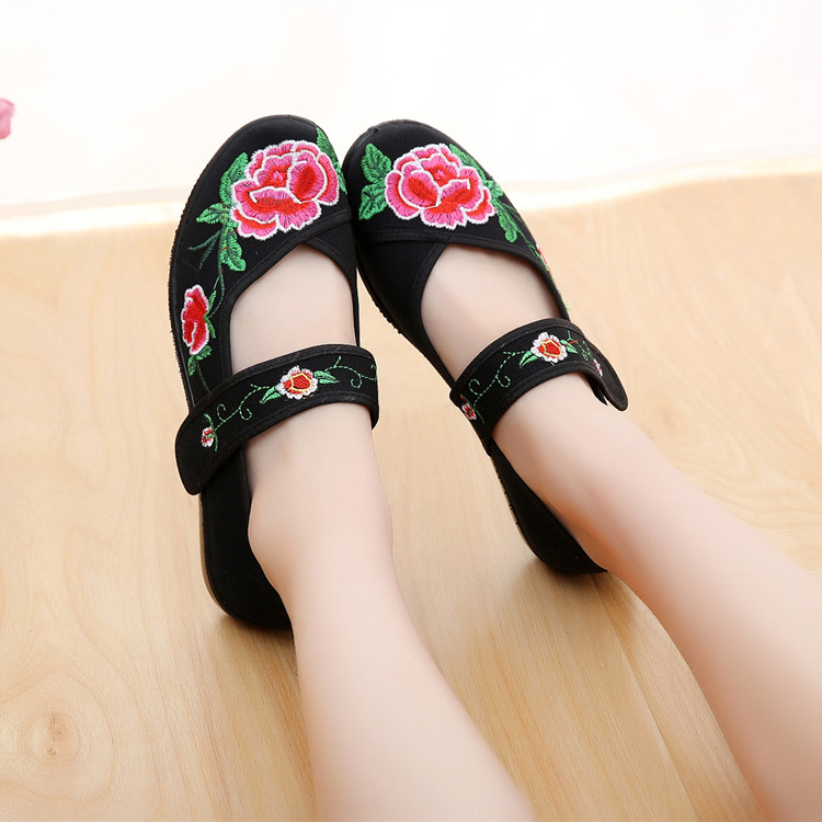Old Beijing cloth shoes square dance shoes ethnic style bandage embroidered shoes flat girls dance performance embroidered shoes