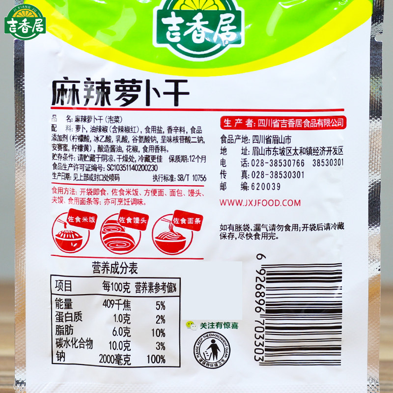 Jixiangju 52g Sichuan Kimchi Spicy Spicy Dried Radish Pickled Pepper Cowpea Spicy Wild Pepper Seaweed Shredded Rice