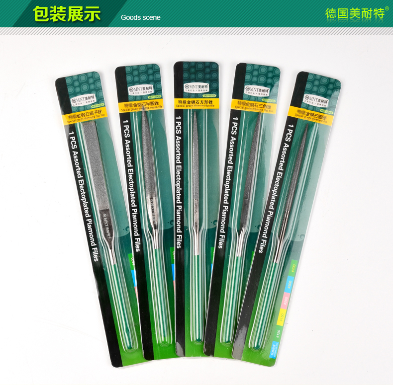 (Flat file) Small file (MNT165401) (Round file) Jingangshi Small File (MNT165402) (Semicircular File) Jingangshi Small File (MNT165402) (Semi-Circular File) Jingangshi Small File (MNT165403) (Square File) Jingangshi Small File (MNT165405) (Triangle File) Jingangshi Small File (MNT165404) (5 sets) Contains Flat Round File Half Round File Triangle File 1 each