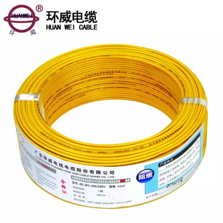 Guangdong Huanwei wire BV1 square national standard home improvement lighting socket with copper core single core single strand copper wire 100 meters