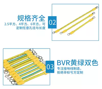 Pure copper national standard two-color connection grounding wire Photovoltaic panel connection grounding wire assembly yellow and green jumper cabinet connection wire lightning protection wire