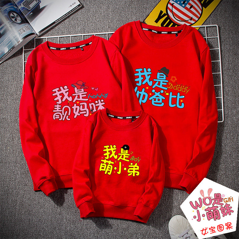 Special fried street red parent-child dress early autumn family portrait mother and daughter dress Western style sweater for a family of three and four