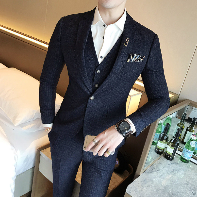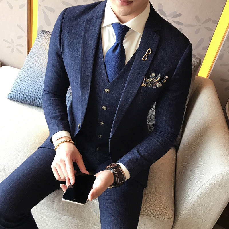 Groom's suit suit men's three sets of wedding gowns winter bridegroom Little West Furnishing Body Workout Positive Dress