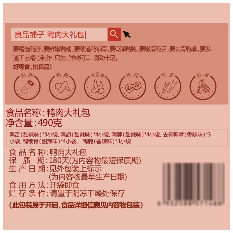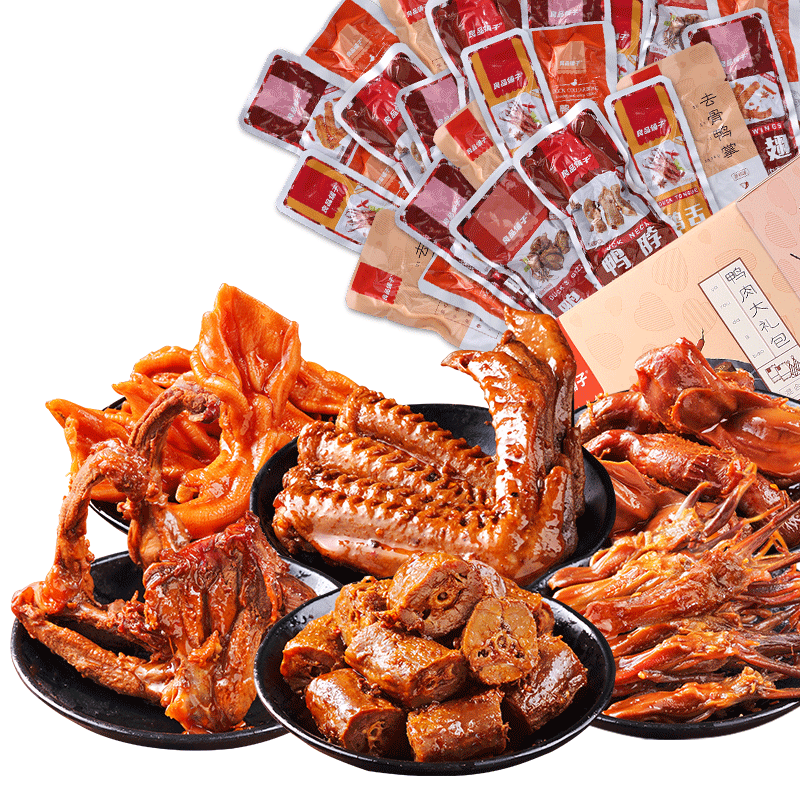 BESTORE Duck Meat Gift Pack Spicy Duck Neck Duck Tongue Duck Claw Snacks Braised Snacks 490g About 21 Bags