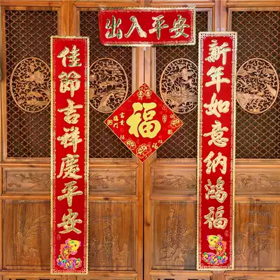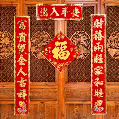 High-end gold leaf couplet Spring Festival flocking couplet New Year door decoration door couplet Spring couplet housewarming couplet Boxed self-adhesive