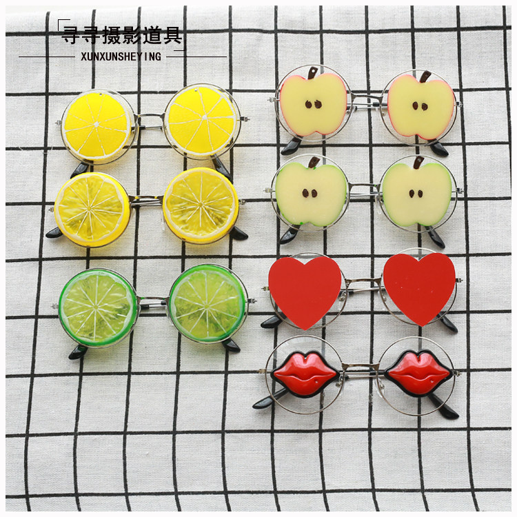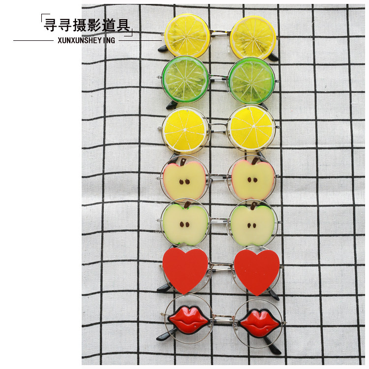 Yellow lemon slices glasses green lemon slices glasses red heart glasses red lips glasses pink apple slices glasses watermelon slices glasses lemon slices glasses go with me lips hi words