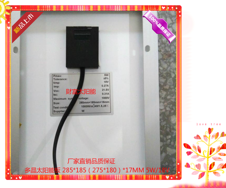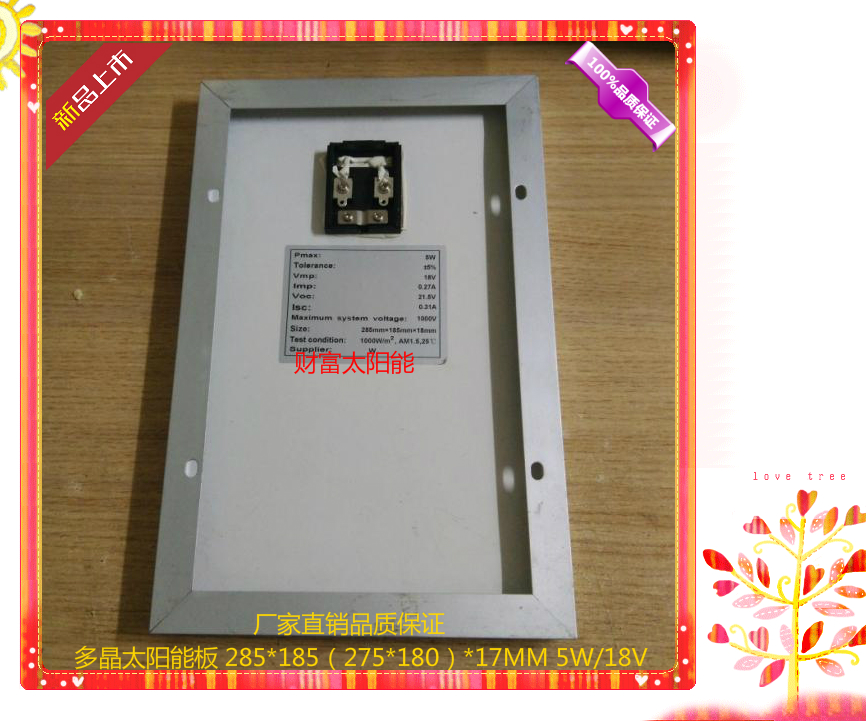 285 285 * 185 (275 * 180) * 17MM 5W 18V polycrystalline solar panel manufacturer direct