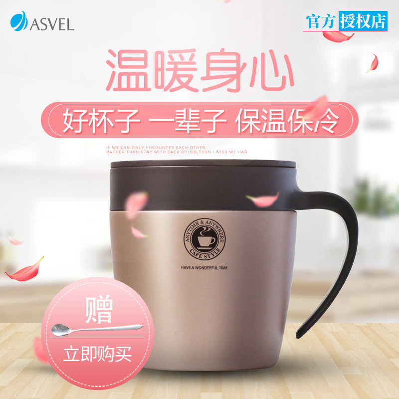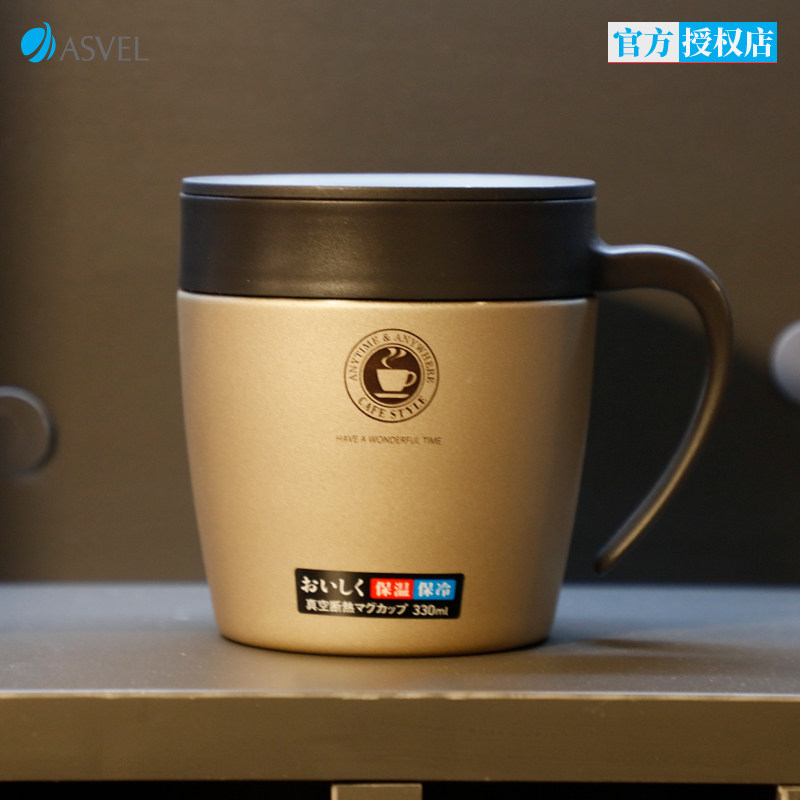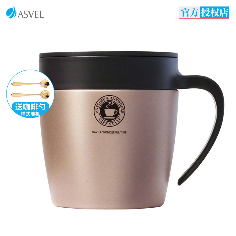 Japan ASVEL coffee cup Office mug Stainless steel insulation cup Couple simple water cup with lid spoon