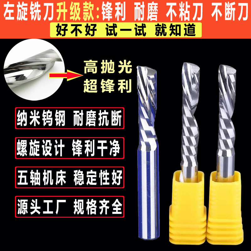Imported material 3 175 left-handed single-edged spiral milling cutter cut acrylic PVC advertising solid wood engraving machine head