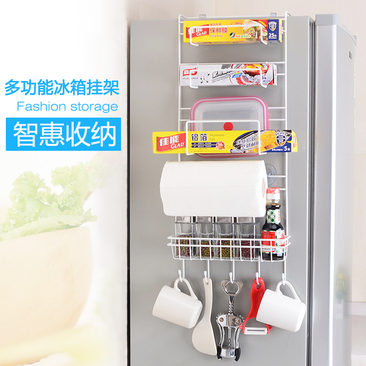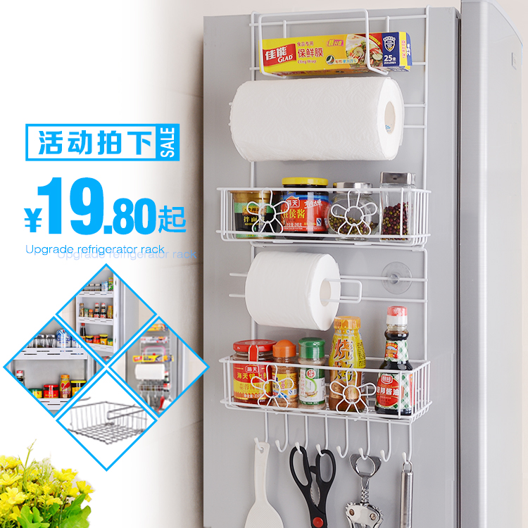 Silver hanging basket three-layer wood-plastic plate fridge rack two-floor wood-plastic plate fridge rack sunflower fridge rack white hanging basket multifunction fridge hanger