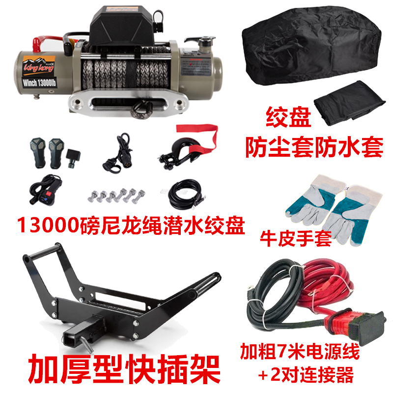 Portable quick-plug winch off-road vehicle activity quick-release bracket car self-rescue and escape electric 12v car cart