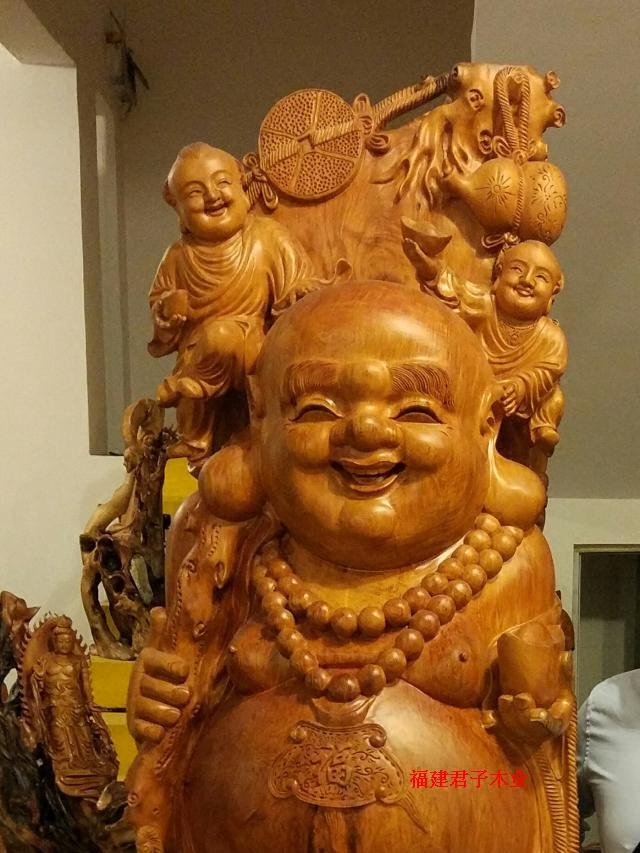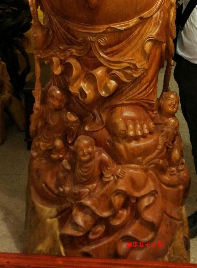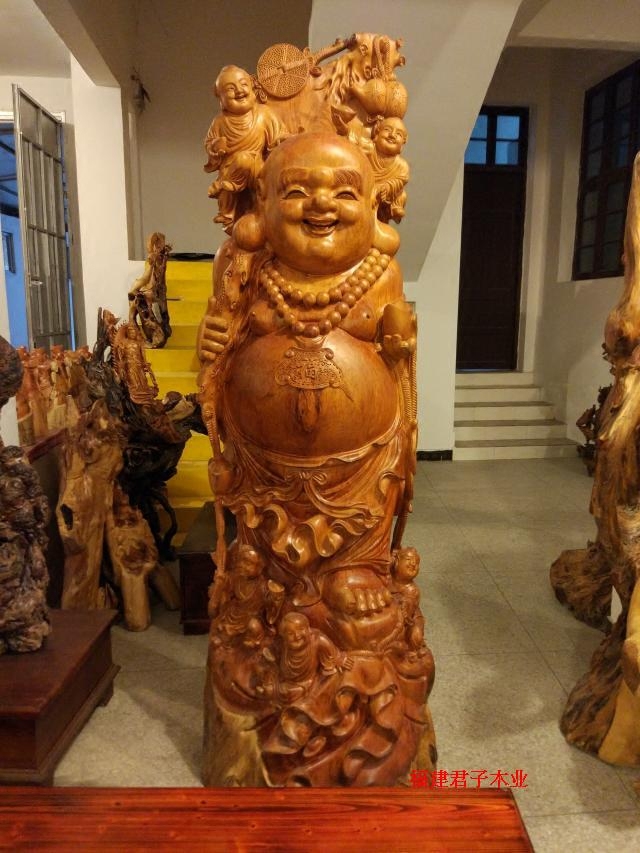Large root carving wood carving Maitreya ornaments Wuzi Dengke Mahogany lucky treasure Living room lobby Hotel artwork
