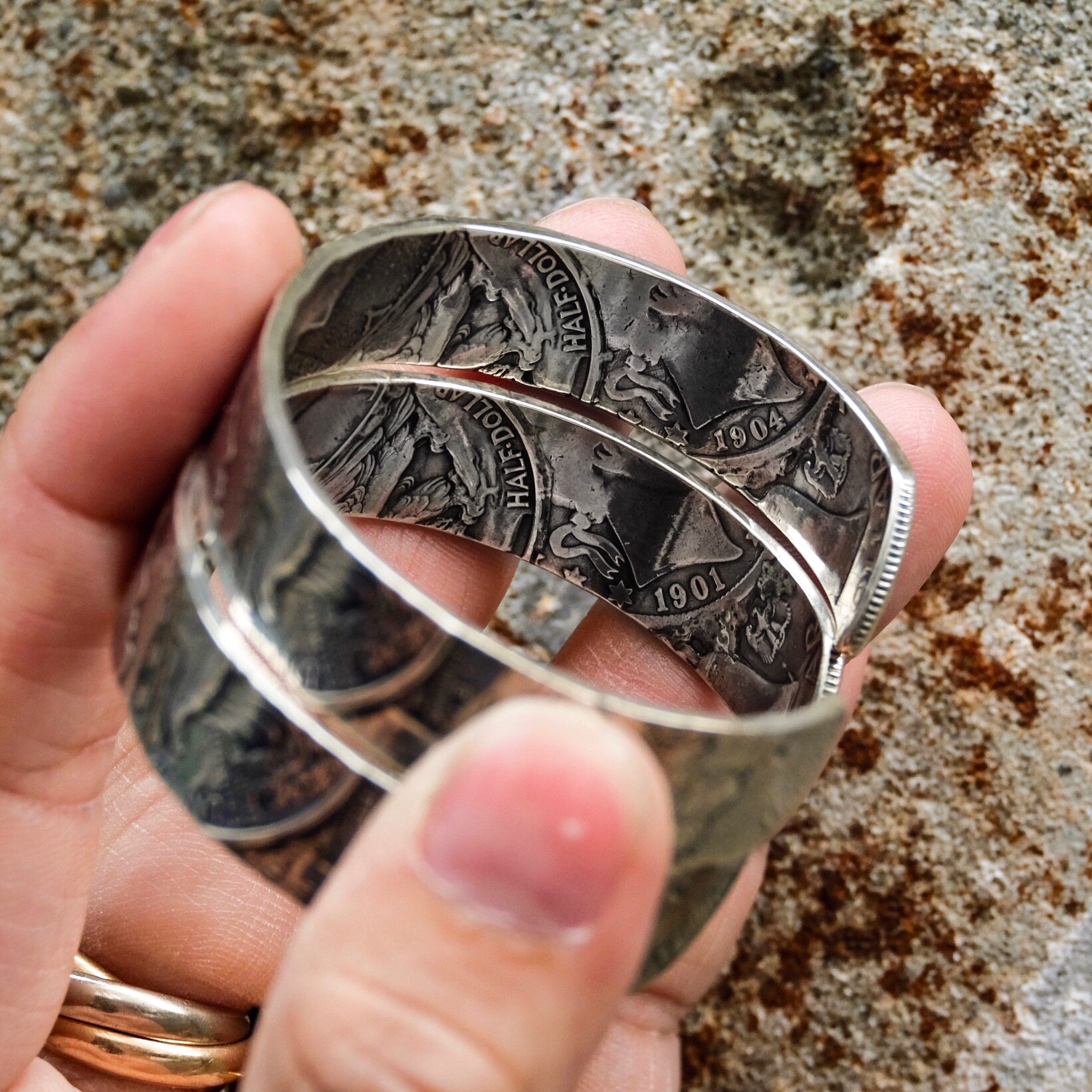 Spot Simmering (North Works) 50, Patchwork Bracelet Morgan Coin Bracelet